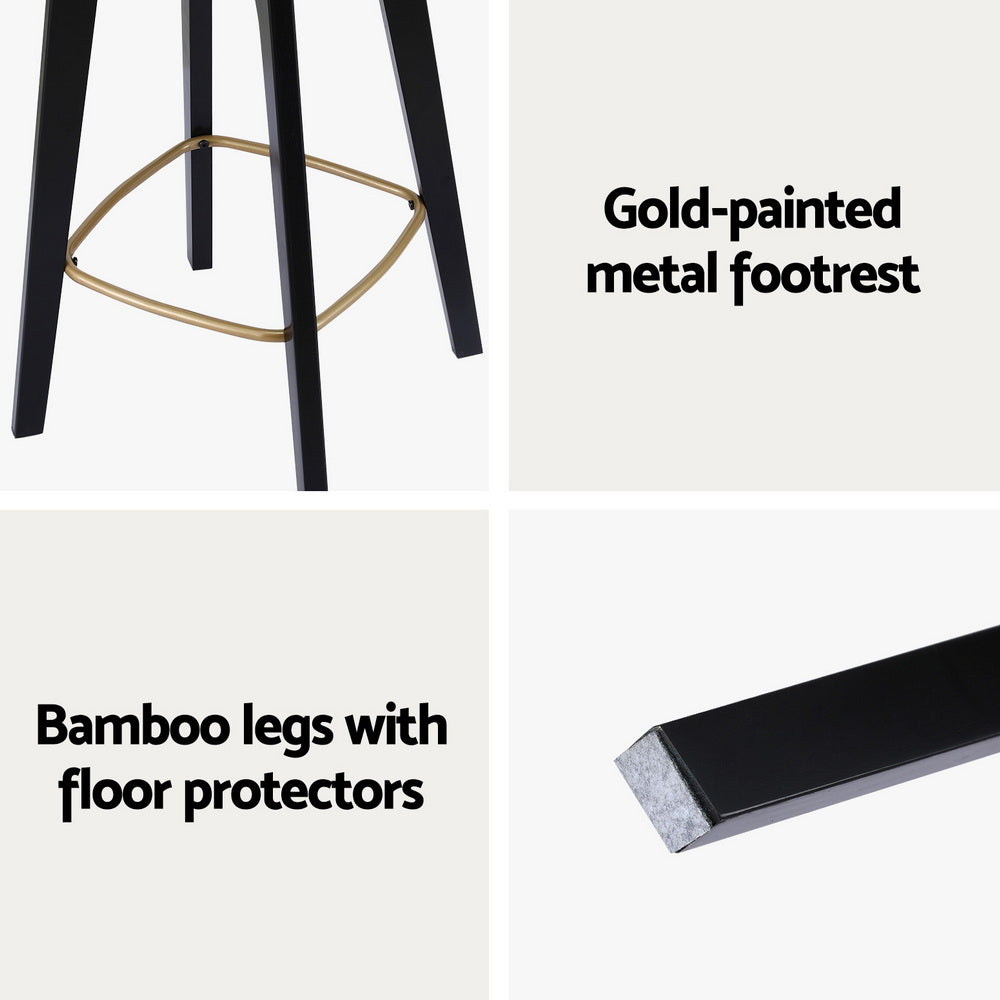 Upgrade your home with these elegant backless rattan bar stools, featuring a stylish two-tone design and a comfortable woven rattan seat. The sturdy bamboo construction ensures durability, while the gold-painted metal footrest adds a touch of sophistication. With a 120kg weight capacity and anti-slip floor protectors, these stools offer reliable stability and safety. Perfect for kitchen counters or bar areas, this set of 2 stools combines functionality with modern aesthetics. Easy to assemble and built to last, they're the perfect addition to your space. Order now and elevate your seating experience!